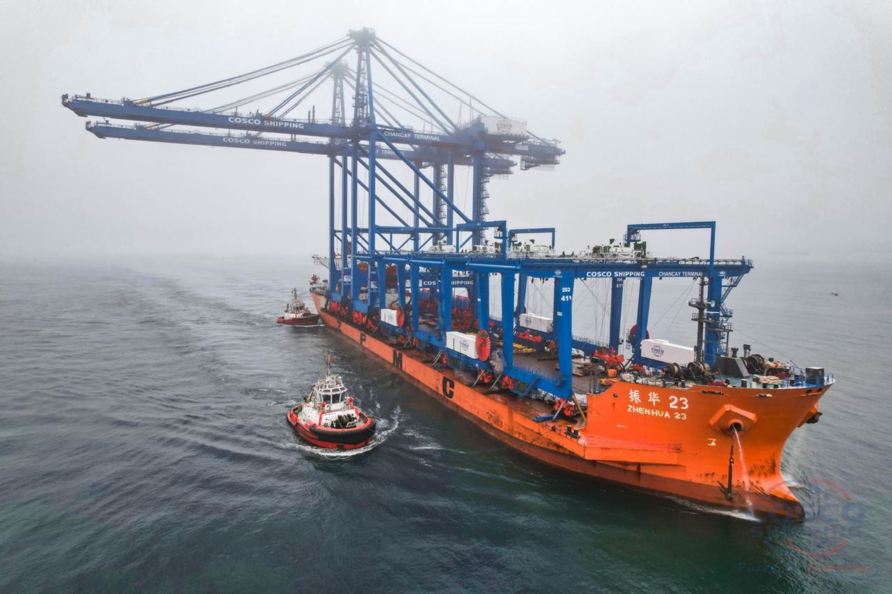 Estas grúas especializadas en el traslado de contenedores llegaron hoy a Chancay directamente desde el puerto de Shanghái en el buque de la compañía Shangai Heavy Company Industry, una de las principales empresas a nivel mundial en la fabricación de equipos pesados, especialmente grúas portuarias y equipos de manipulación de contenedores.