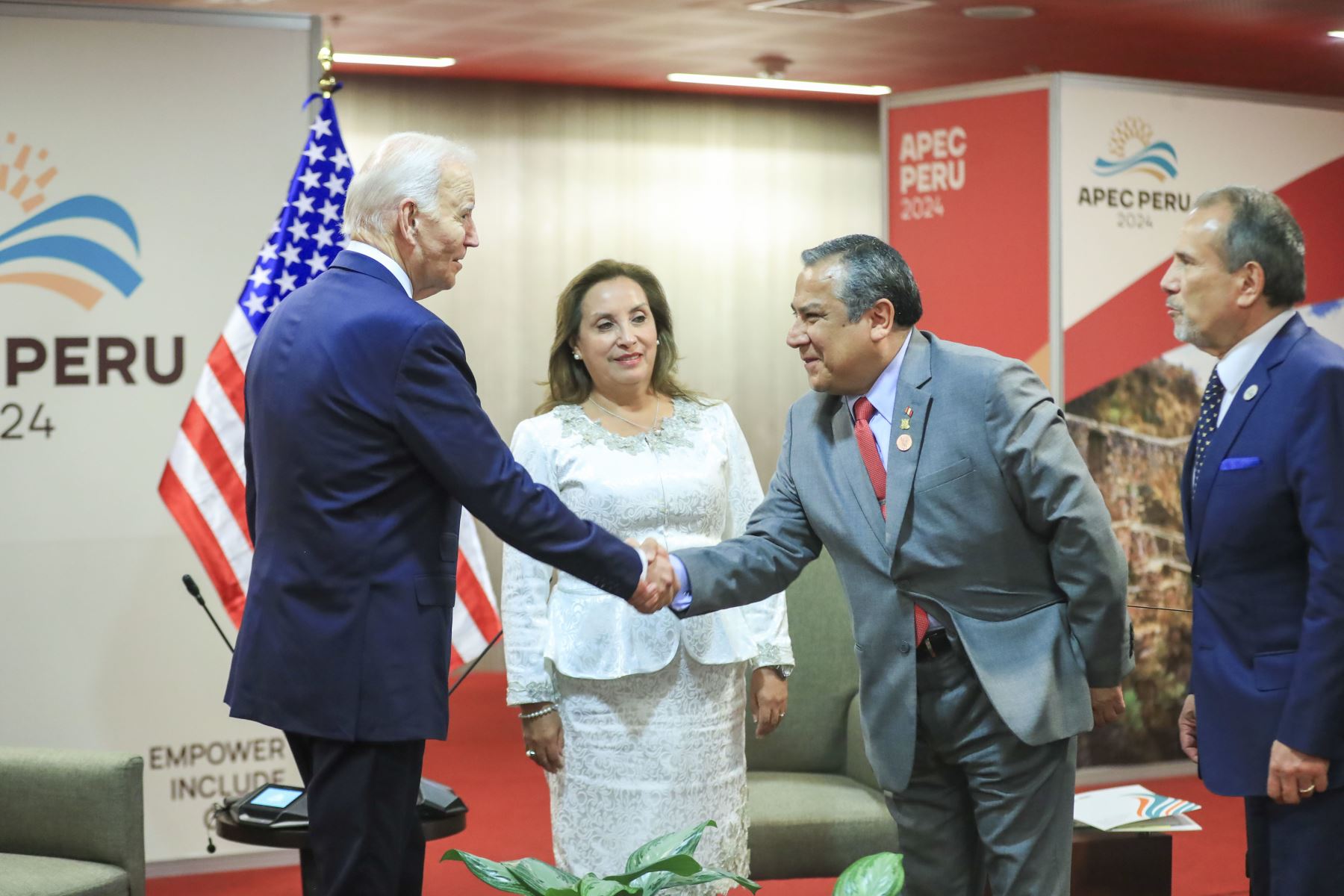 Lima, 15 Noviembre 2024, (ANDINA).- El presidente del Consejo de Ministros, Gustavo Adrianzén, participó en la reunión bilateral que sostuvieron la Presidenta de la República, Dina Boluarte, y su homólogo de Estados Unidos, Joe Biden, para abordar diversos temas vinculados a la cooperación comercial y económica que existe entre ambas naciones.