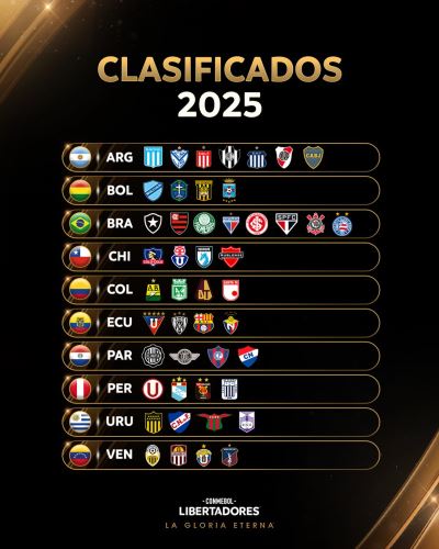Los únicos representantes peruanos en la Fase de Grupos de la Copa Libertadores 2025 son Universitario de Deportes, que se adueñó del cupo Perú 1 por ser el campeón nacional, y Sporting Cristal, que tiene el cupo Perú 2 por quedar en el segundo lugar de la Tabla Acumulada de la Liga 1.