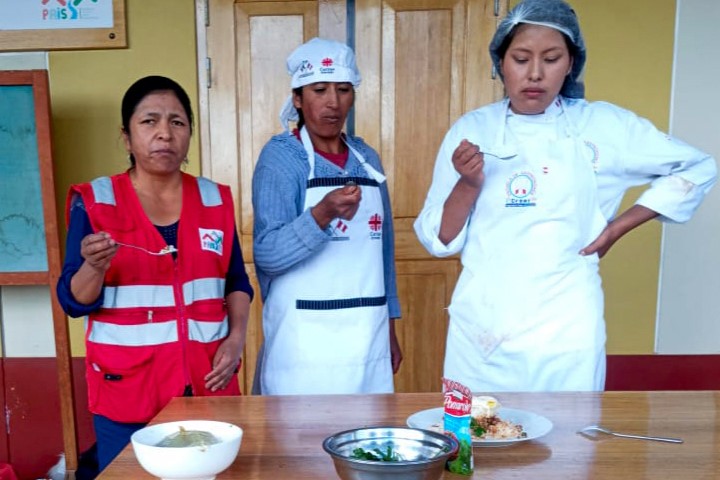 En el Tambo Sachabamba, en Chiara, doce mujeres transformaron su vida cotidiana luego de llevar los talleres de cocina y repostería. Dos veces por semana, aprendieron sobre técnicas gastronómicas, la elaboración de presupuestos, la formulación de recetas para preparar platos con productos de la zona, tortas y postres que las animarán a implementar sus propios negocios de venta de diversos potajes que les generen mayores ingresos para sus familias.