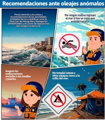 Ante la continuidad de oleaje de ligera a fuerte intensidad, fenómeno que se prolongaría hasta el martes 7 de enero, el Instituto Nacional de Defensa Civil (Indeci) recomienda un conjunto de medidas de preparación