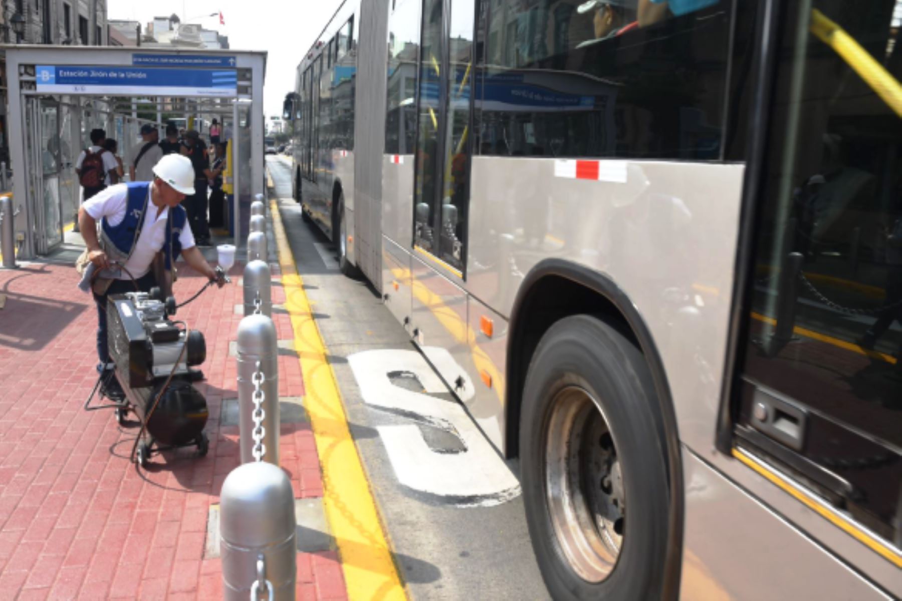 – Pintado de 6 168 metros lineales de rejas amarillas que separan la vía exclusiva de la mixta, desde el terminal Matellini hasta la estación Plaza de Flores, entre otros.