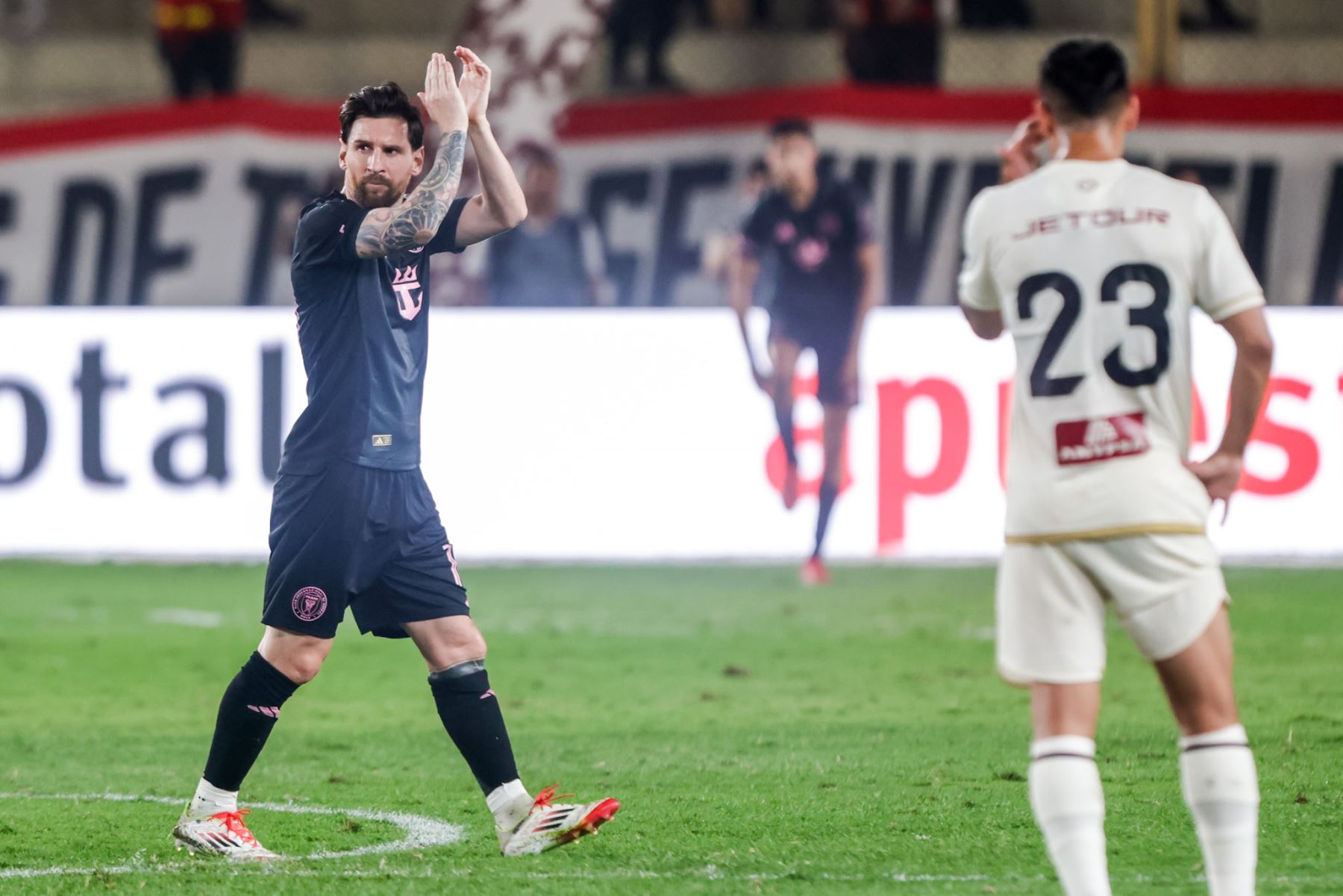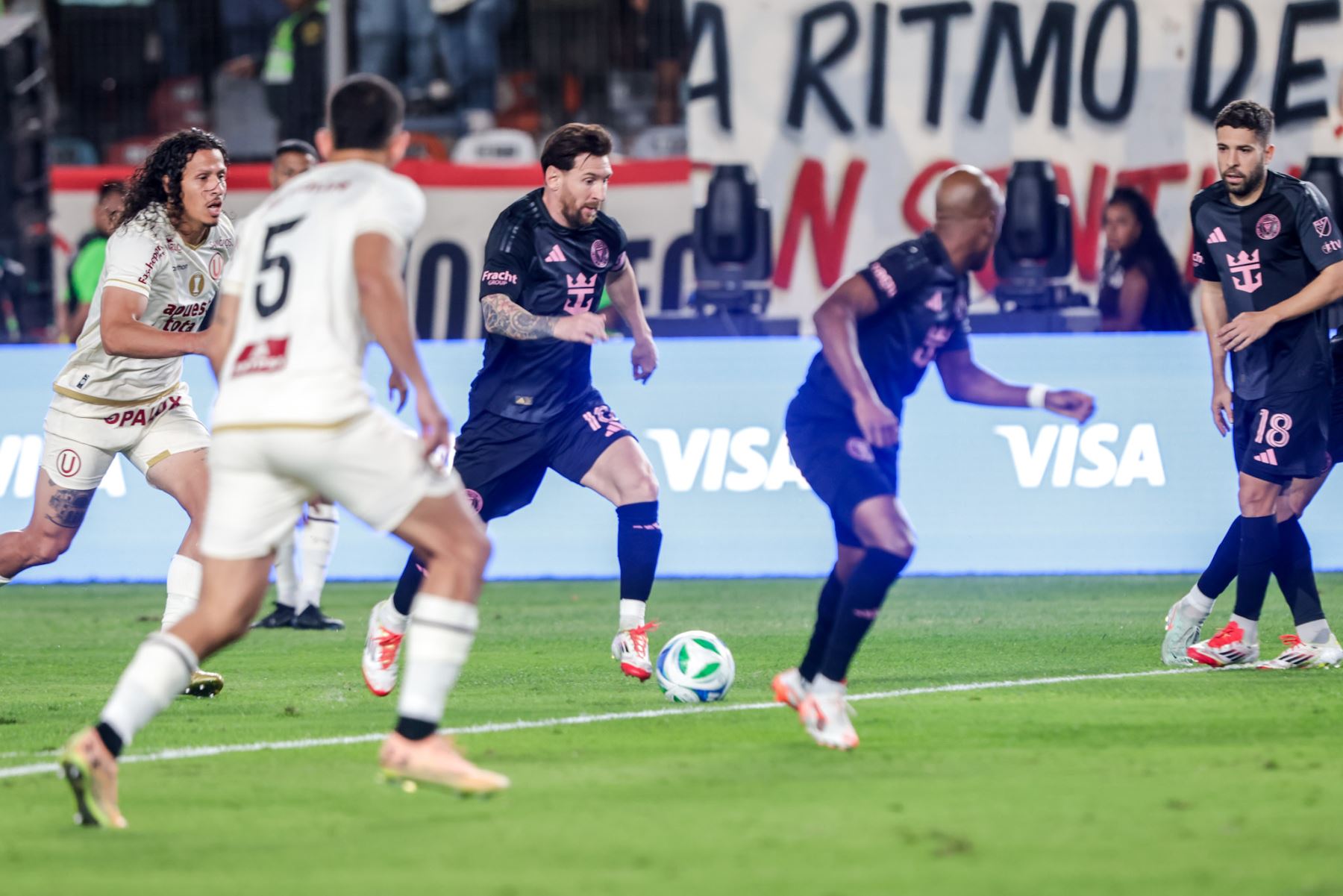 Inter Miami salió a presionar desde el arranque del partido a su rival peruano para buscar abrir el marcador en el estadio Monumental, con miles de hinchas vestidos con camisetas rosadas y cremas en honor a las dos escuadras.