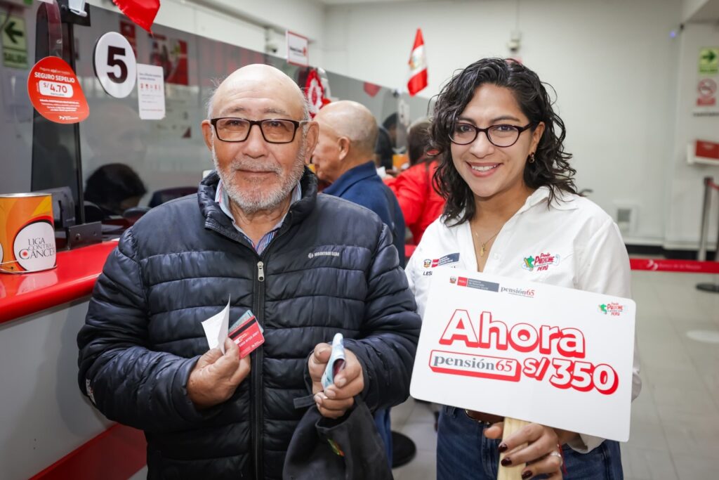 «En Pensión 65 tenemos a más de 1000 adultos mayores que superan los 100 años, a quienes estamos llegando con el pago a sus casas, gracias al esfuerzo articulado con el Banco de la Nación», añadió.