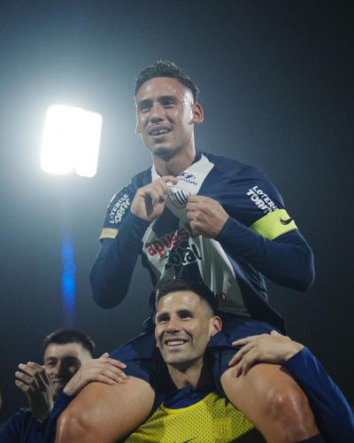 Hernán Barco, como líder y capitán del equipo, y sus compañeros llevaron a Noriega en hombros hasta la tribuna sur para que la hinchada íntima coree su nombre.