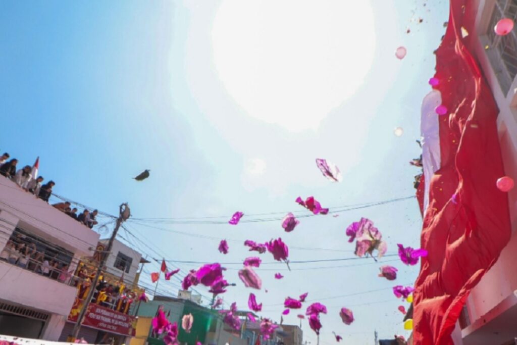 Cada 28 de agosto, en la Procesión de la Bandera, las buganvillas caen desde los balcones como un tributo de amor a la patria y recuerdo eterno del pasado heroico de Tacna.