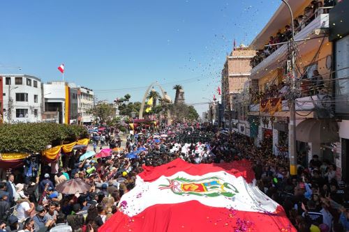 Tacna, 28 agosto 2025 (ANDINA).- La Ciudad Heroica se convirtió hoy en escenario de una de las mayores expresiones de fervor patriótico con la emblemática Procesión de la Bandera como acto principal de la conmemoración del 96 aniversario del retorno de Tacna al territorio peruano.