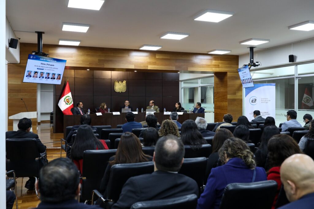 El magistrado Domínguez participó en el panel «Acción de amparo contra laudos arbitrales». Compartió la mesa de debate con Gustavo Rivera (Rivera Ferreyros Abogados), Cecilia Espinoza (jueza suprema provisional de la Corte Suprema de Justicia), Jaime Heredia (Rodríguez Angobaldo Abogados), Julio Martín Wong (abogado y árbitro) y Lourdes Flores (árbitro).