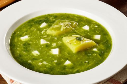 Esta sabrosa sopa cuyo nombre proviene de las diversas hierbas que se utilizan en su preparación, es infaltable en los desayunos familiares de la región Cajamarca. Las verduras que suelen utilizarse en su elaboración son paico, perejil, hierbabuena y ruda, las cuales son molidas en batán, un recipiente hecho de piedra donde se muelen los insumos de cocina para obtener una pasta que les otorga sabor y color a las comidas.