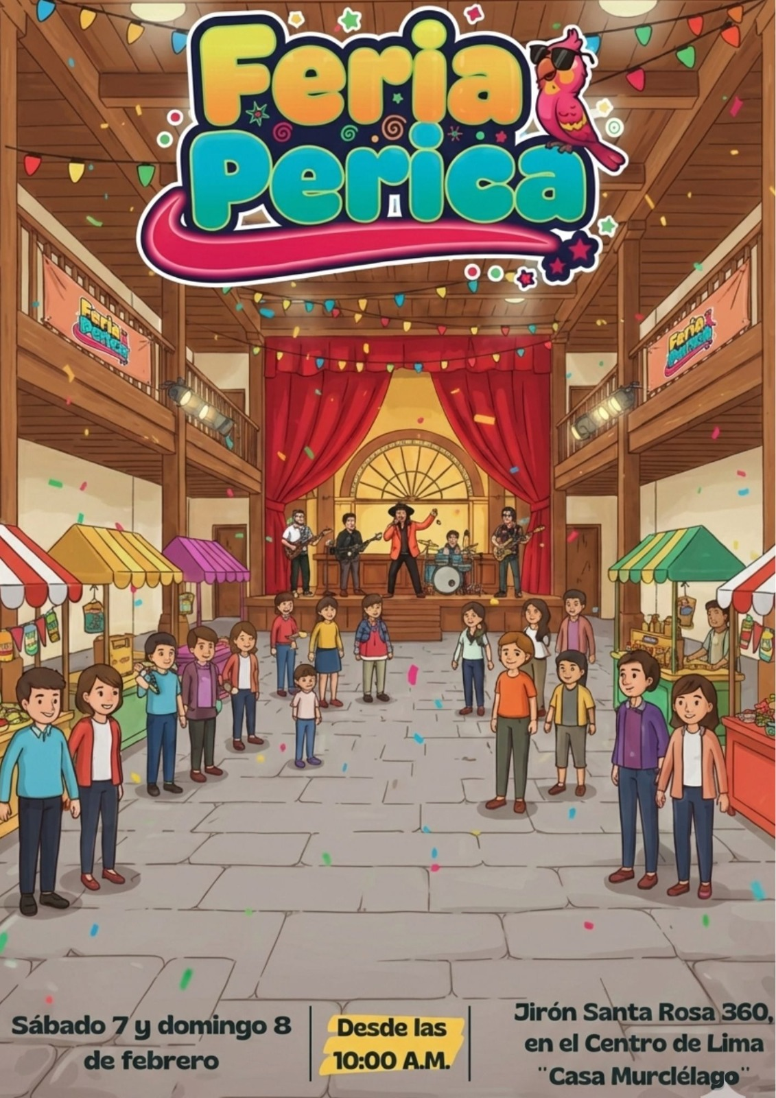 Lima, 26 de enero 2026 (El Informante Perú).-El Centro de Lima se transforma en un punto de encuentro cultural este sábado 7 y domingo 8 de febrero con la llegada de Feria Perica, una propuesta vibrante y familiar que reúne música en vivo, gastronomía, talleres, arte y emprendimientos independientes en un solo espacio: la Casa Murciélago, ubicada en el Jirón Santa Rosa 360, Centro de Lima.