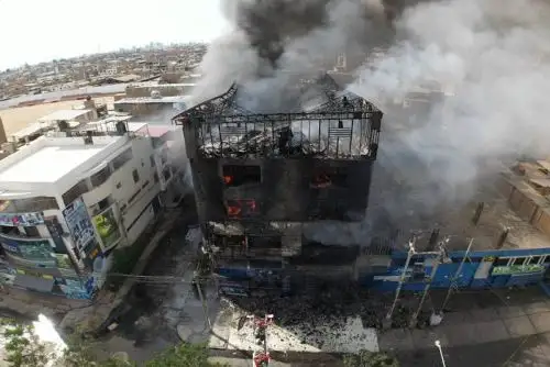 Trujillo, 27 de enero 2026 (ANDINA).- Un total de seis personas (tres civiles y tres bomberos) fueron afectados a consecuencia de un gran incendio que se registró esta tarde en un edificio ubicado en la cuadra nueve de la avenida César Vallejo, en el corazón de la ciudad de Trujillo, región La Libertad.