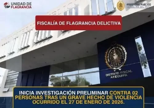 Arequipa, 29 de enero 2026 (ANDINA).- La Primera Fiscalía Provincial Penal de Flagrancia Delictiva de Arequipa inició, de forma inmediata, una investigación preliminar y la ejecución de «diligencias urgentes e inaplazables» tras un grave hecho de violencia perpetrado el martes 27 de enero de este año en un inmueble ubicado en el distrito de Mariano Melgar, en la provincia y región Arequipa.