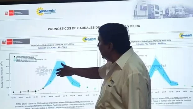 En cuanto al comportamiento hidrológico, el especialista indicó que el caudal del río Piura se mantiene actualmente sin niveles de alerta. El umbral de alerta roja está fijado en 1.900 metros cúbicos por segundo y, hasta el momento, los registros se encuentran muy por debajo de ese nivel. Históricamente, en eventos de Niño costero débil —categoría en la que podría ubicarse el actual escenario— la mayoría de caudales no ha superado la capacidad hidráulica del río.